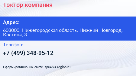 Тэктор, компания по адресу 603000, Нижегородская область, Нижний Новгород, Костина, 3 в дальнейшем Организация, размещена в следующих категориях:
