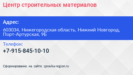 Центр строительных материалов по адресу 603034, Нижегородская область, Нижний Новгород, Порт-Артурская, 9Б в дальнейшем Организация, размещена в следующих категориях: