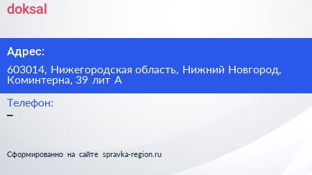 doksal по адресу 603014, Нижегородская область, Нижний Новгород, Коминтерна, 39 лит А в дальнейшем Организация, размещена в следующих категориях: