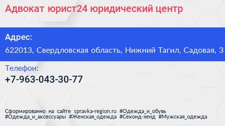 Адвокат-юрист24, юридический центр по адресу 622013, Свердловская область, Нижний Тагил, Садовая, 3 в дальнейшем Организация, размещена в следующих категориях:
