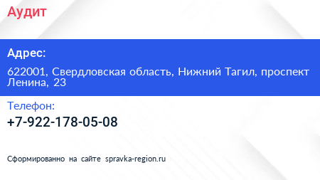 Аудит по адресу 622001, Свердловская область, Нижний Тагил, проспект Ленина, 23 в дальнейшем Организация, размещена в следующих категориях: