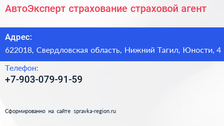 АвтоЭксперт-страхование, страховой агент по адресу 622018, Свердловская область, Нижний Тагил, Юности, 4 в дальнейшем Организация, размещена в следующих категориях: