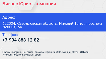 Бизнес-Юрист, компания по адресу 622034, Свердловская область, Нижний Тагил, проспект Ленина, 64 в дальнейшем Организация, размещена в следующих категориях: