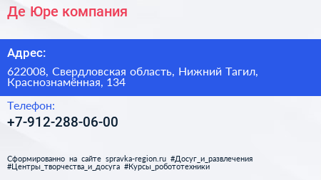 Де-Юре, компания по адресу 622008, Свердловская область, Нижний Тагил, Краснознамённая, 134 в дальнейшем Организация, размещена в следующих категориях:
