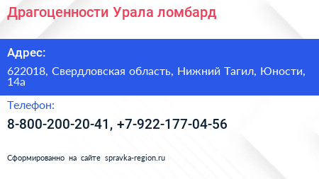 Драгоценности Урала, ломбард по адресу 622018, Свердловская область, Нижний Тагил, Юности, 14а в дальнейшем Организация, размещена в следующих категориях: