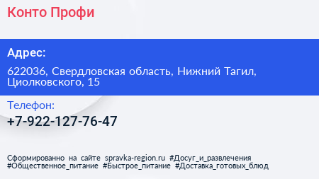 Конто Профи по адресу 622036, Свердловская область, Нижний Тагил, Циолковского, 15 в дальнейшем Организация, размещена в следующих категориях: