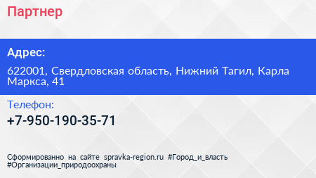 Партнер по адресу 622001, Свердловская область, Нижний Тагил, Карла Маркса, 41 в дальнейшем Организация, размещена в следующих категориях: