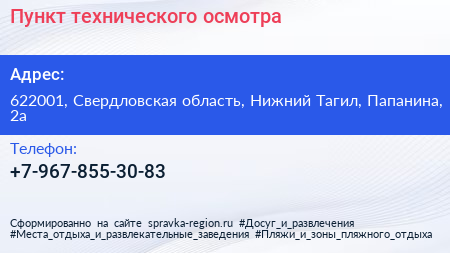 Пункт технического осмотра по адресу 622001, Свердловская область, Нижний Тагил, Папанина, 2а в дальнейшем Организация, размещена в следующих категориях: