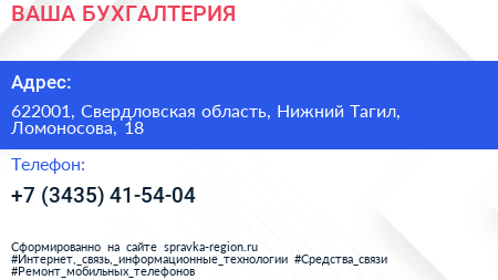 ВАША БУХГАЛТЕРИЯ по адресу 622001, Свердловская область, Нижний Тагил, Ломоносова, 18 в дальнейшем Организация, размещена в следующих категориях: