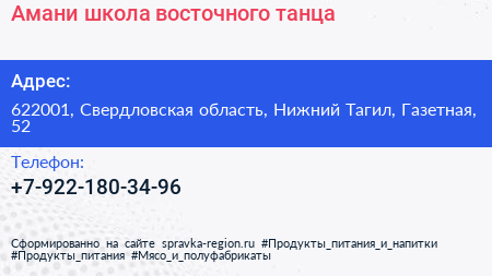 Амани, школа восточного танца по адресу 622001, Свердловская область, Нижний Тагил, Газетная, 52 в дальнейшем Организация, размещена в следующих категориях: