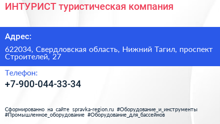 ИНТУРИСТ, туристическая компания по адресу 622034, Свердловская область, Нижний Тагил, проспект Строителей, 27 в дальнейшем Организация, размещена в следующих категориях: