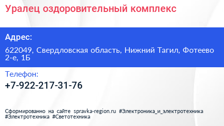 Уралец, оздоровительный комплекс по адресу 622049, Свердловская область, Нижний Тагил, Фотеево 2-е, 1Б в дальнейшем Организация, размещена в следующих категориях: