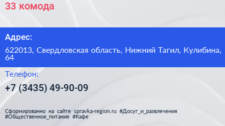 33 комода по адресу 622013, Свердловская область, Нижний Тагил, Кулибина, 64 в дальнейшем Организация, размещена в следующих категориях: