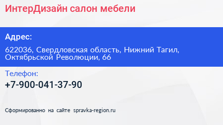 ИнтерДизайн, салон мебели по адресу 622036, Свердловская область, Нижний Тагил, Октябрьской Революции, 66 в дальнейшем Организация, размещена в следующих категориях: