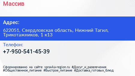 Массив по адресу 622051, Свердловская область, Нижний Тагил, Трикотажников, 1 к13 в дальнейшем Организация, размещена в следующих категориях: