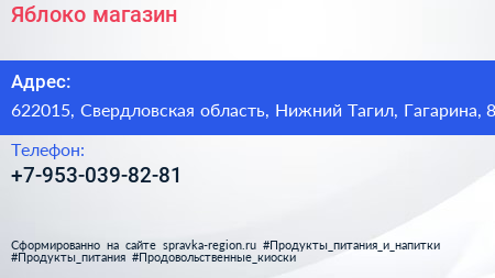 Яблоко, магазин по адресу 622015, Свердловская область, Нижний Тагил, Гагарина, 8 в дальнейшем Организация, размещена в следующих категориях: