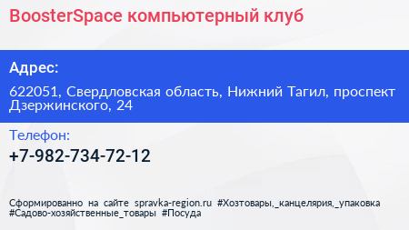 BoosterSpace, компьютерный клуб по адресу 622051, Свердловская область, Нижний Тагил, проспект Дзержинского, 24 в дальнейшем Организация, размещена в следующих категориях: