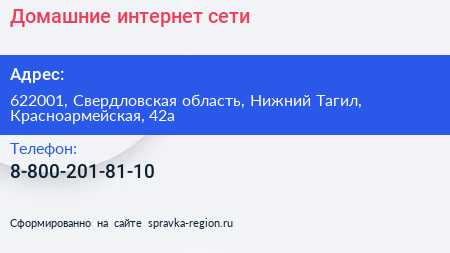 Домашние интернет-сети по адресу 622001, Свердловская область, Нижний Тагил, Красноармейская, 42а в дальнейшем Организация, размещена в следующих категориях: