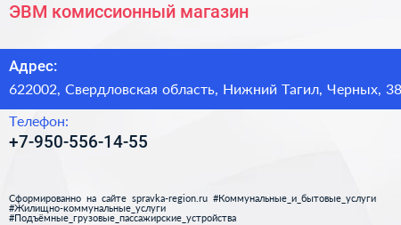 ЭВМ, комиссионный магазин по адресу 622002, Свердловская область, Нижний Тагил, Черных, 38 в дальнейшем Организация, размещена в следующих категориях: