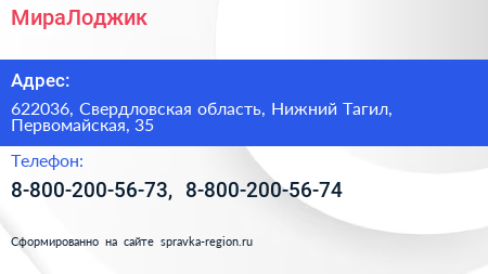 МираЛоджик по адресу 622036, Свердловская область, Нижний Тагил, Первомайская, 35 в дальнейшем Организация, размещена в следующих категориях:
