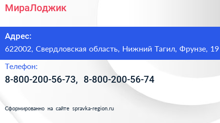 МираЛоджик по адресу 622002, Свердловская область, Нижний Тагил, Фрунзе, 19 в дальнейшем Организация, размещена в следующих категориях: