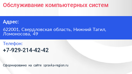 Обслуживание компьютерных систем по адресу 622001, Свердловская область, Нижний Тагил, Ломоносова, 49 в дальнейшем Организация, размещена в следующих категориях: