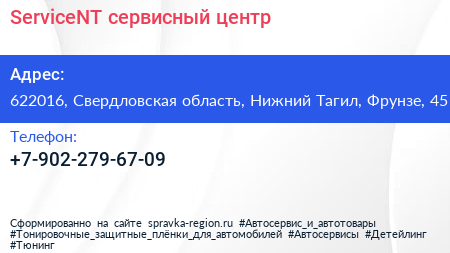 ServiceNT, сервисный центр по адресу 622016, Свердловская область, Нижний Тагил, Фрунзе, 45 в дальнейшем Организация, размещена в следующих категориях: