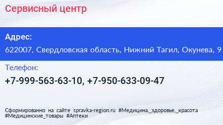 Сервисный центр по адресу 622007, Свердловская область, Нижний Тагил, Окунева, 9 в дальнейшем Организация, размещена в следующих категориях: