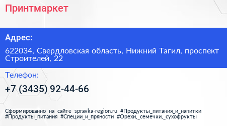 Принтмаркет по адресу 622034, Свердловская область, Нижний Тагил, проспект Строителей, 22 в дальнейшем Организация, размещена в следующих категориях: