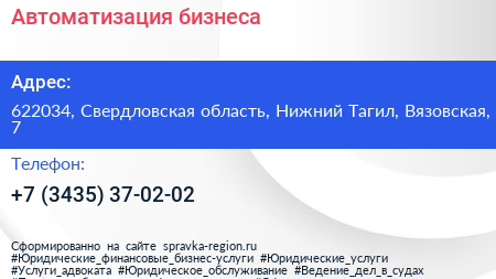 Автоматизация бизнеса по адресу 622034, Свердловская область, Нижний Тагил, Вязовская, 7 в дальнейшем Организация, размещена в следующих категориях: