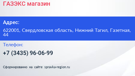 ГАЗЭКС, магазин по адресу 622001, Свердловская область, Нижний Тагил, Газетная, 44 в дальнейшем Организация, размещена в следующих категориях: