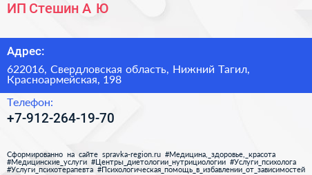 ИП Стешин А.Ю. по адресу 622016, Свердловская область, Нижний Тагил, Красноармейская, 198 в дальнейшем Организация, размещена в следующих категориях: