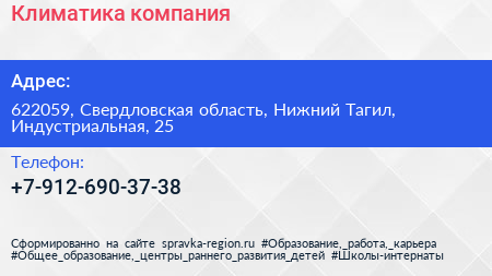 Климатика, компания по адресу 622059, Свердловская область, Нижний Тагил, Индустриальная, 25 в дальнейшем Организация, размещена в следующих категориях: