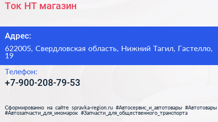 Ток НТ, магазин по адресу 622005, Свердловская область, Нижний Тагил, Гастелло, 19 в дальнейшем Организация, размещена в следующих категориях: