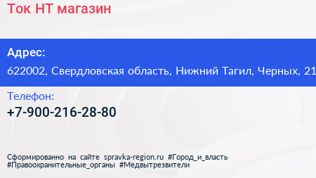 Ток НТ, магазин по адресу 622002, Свердловская область, Нижний Тагил, Черных, 21 в дальнейшем Организация, размещена в следующих категориях: