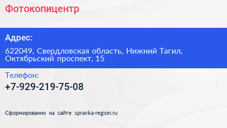 Фотокопицентр по адресу 622049, Свердловская область, Нижний Тагил, Октябрьский проспект, 15 в дальнейшем Организация, размещена в следующих категориях: