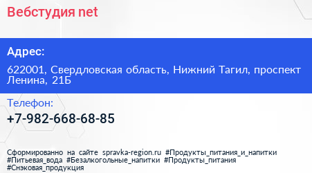 Вебстудия.net по адресу 622001, Свердловская область, Нижний Тагил, проспект Ленина, 21Б в дальнейшем Организация, размещена в следующих категориях: