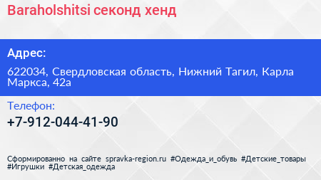 Baraholshitsi, секонд-хенд по адресу 622034, Свердловская область, Нижний Тагил, Карла Маркса, 42а в дальнейшем Организация, размещена в следующих категориях: