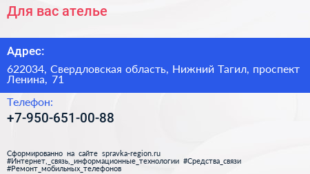 Для вас, ателье по адресу 622034, Свердловская область, Нижний Тагил, проспект Ленина, 71 в дальнейшем Организация, размещена в следующих категориях: