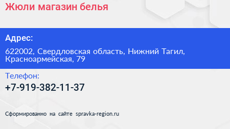 Жюли, магазин белья по адресу 622002, Свердловская область, Нижний Тагил, Красноармейская, 79 в дальнейшем Организация, размещена в следующих категориях: