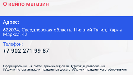О`кейno, магазин по адресу 622034, Свердловская область, Нижний Тагил, Карла Маркса, 42 в дальнейшем Организация, размещена в следующих категориях: