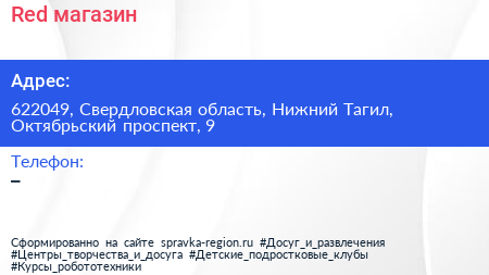 Red, магазин по адресу 622049, Свердловская область, Нижний Тагил, Октябрьский проспект, 9 в дальнейшем Организация, размещена в следующих категориях: