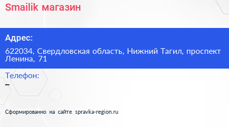 Smailik, магазин по адресу 622034, Свердловская область, Нижний Тагил, проспект Ленина, 71 в дальнейшем Организация, размещена в следующих категориях: