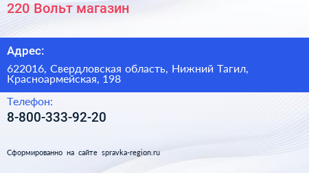 220 Вольт, магазин по адресу 622016, Свердловская область, Нижний Тагил, Красноармейская, 198 в дальнейшем Организация, размещена в следующих категориях: