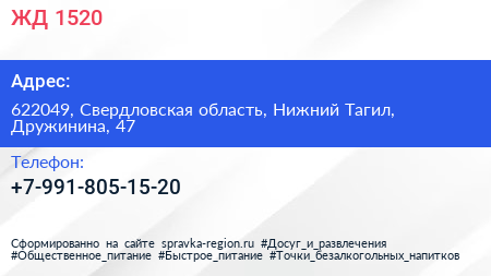 ЖД 1520 по адресу 622049, Свердловская область, Нижний Тагил, Дружинина, 47 в дальнейшем Организация, размещена в следующих категориях: