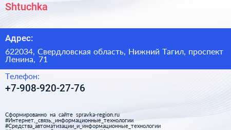 Shtuchka по адресу 622034, Свердловская область, Нижний Тагил, проспект Ленина, 71 в дальнейшем Организация, размещена в следующих категориях: