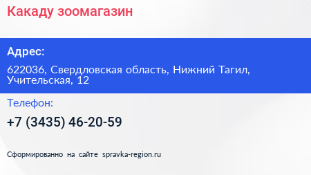 Какаду, зоомагазин по адресу 622036, Свердловская область, Нижний Тагил, Учительская, 12 в дальнейшем Организация, размещена в следующих категориях: