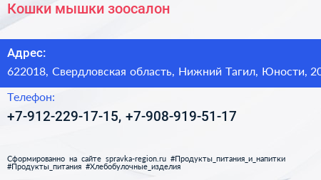 Кошки-мышки, зоосалон по адресу 622018, Свердловская область, Нижний Тагил, Юности, 20 в дальнейшем Организация, размещена в следующих категориях: