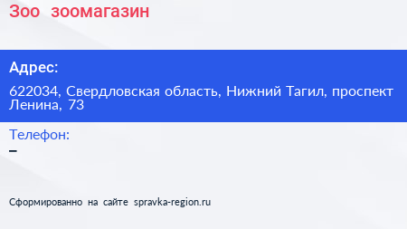 Зоо+, зоомагазин по адресу 622034, Свердловская область, Нижний Тагил, проспект Ленина, 73 в дальнейшем Организация, размещена в следующих категориях: