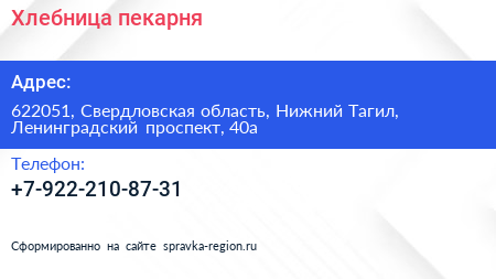 Хлебница, пекарня по адресу 622051, Свердловская область, Нижний Тагил, Ленинградский проспект, 40а в дальнейшем Организация, размещена в следующих категориях: